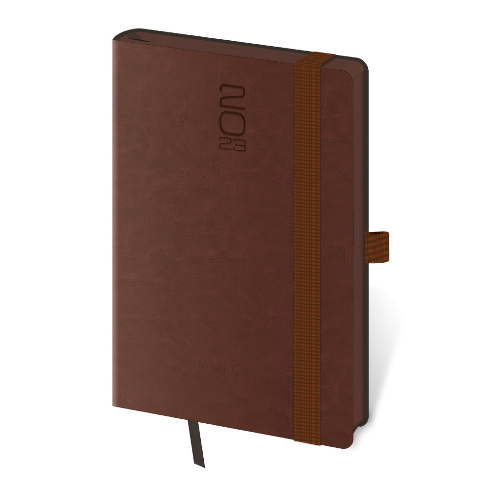 Kalendarz książkowy kieszonkowy tygodniowy 2023 Memory z gumką - ciemnobrązowy