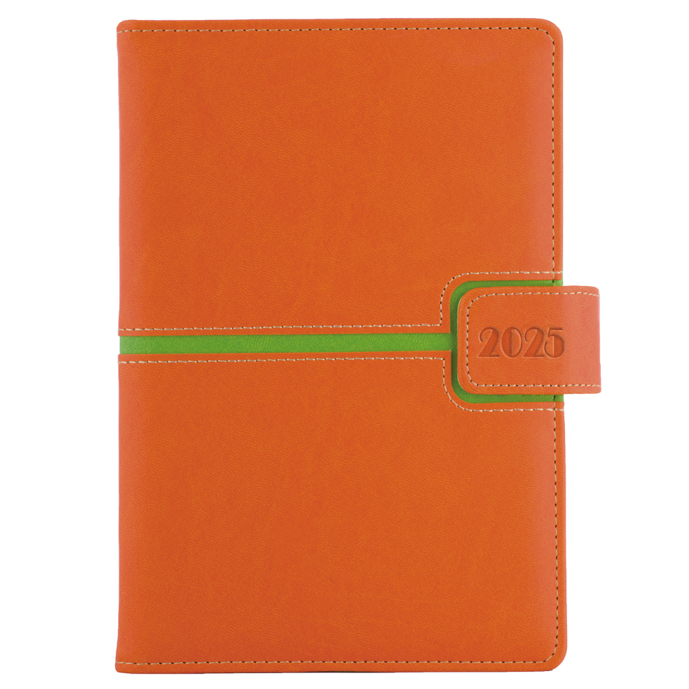 Kalendarz książkowy MAGNETIC dzienny A5 2025 czeski - pomarańczowy/zielony