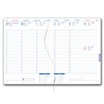 Format: B6 Rozmiar bloku: 120 x 165 mm Ilość stron: 144 stron Wiązanie: szew V8 Kalendarium: tygodniowe czeskie i słowackie z imieninami Mutacje językowe: CZ, SK, EN, DE, RU Kolor bloku: biały Kolor czcionki: niebieski i czerwony Materiał: piank