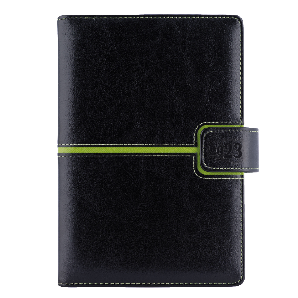 Kalendarz książkowy MAGNETIC tygodniowy z notesem A5 2023 CZ/SK - czarny/zielony