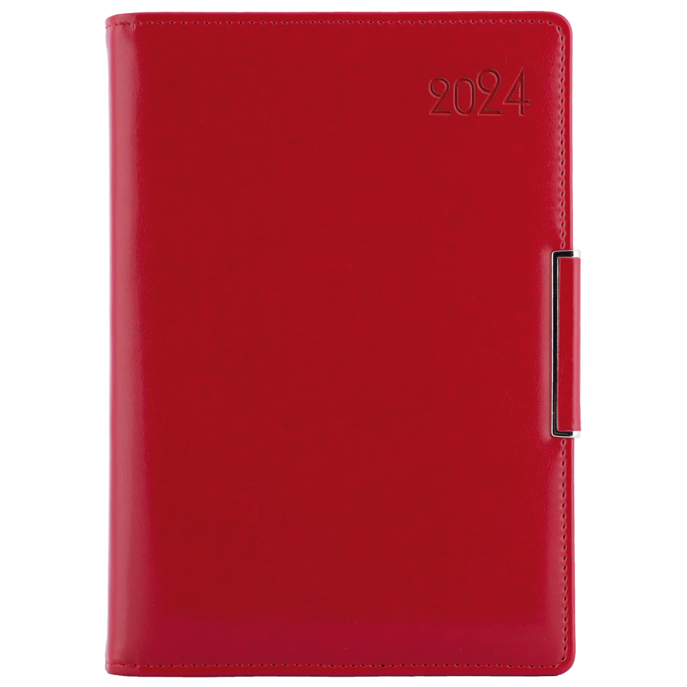 Kalendarz książkowy METALIC dzienny A5 2024 słowacki?? - czerwony