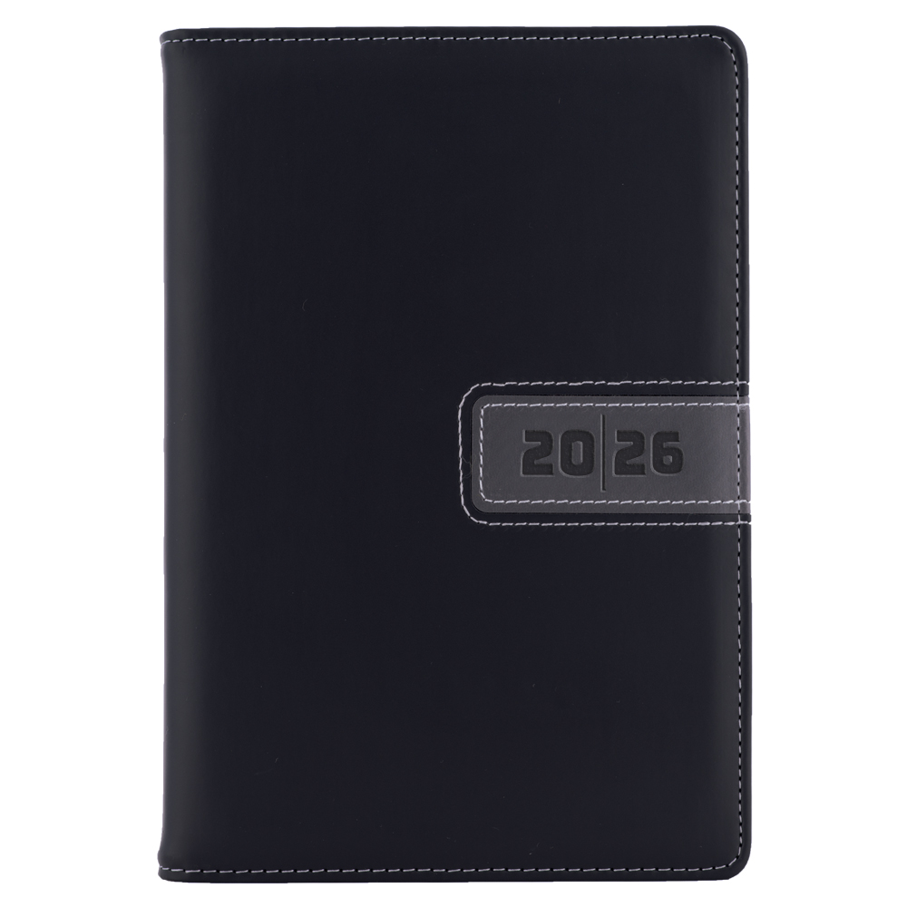 Kalendarz książkowy RIGA dzienny A5 2026 słowacki?? - czarny/szary