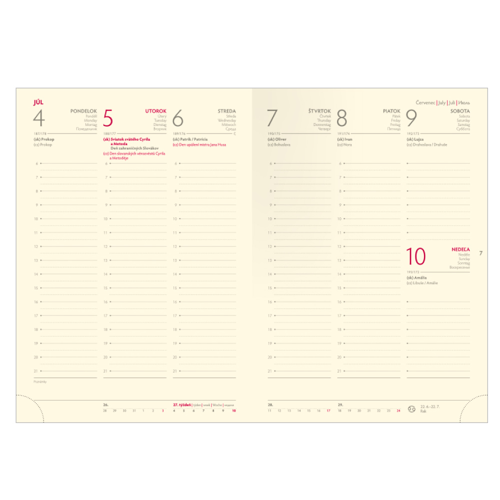 Kalendarz książkowy słowacki Orion 2016 tygodniowy A5 - szary Format: 148 x 210 mm Kalendarium: tygodniowe Zakres: 144 stron, papier - chamois Materiał wierzchni: skóra ekologiczna Główny język: słowacki, inne języki: CZ, ANG, D, RU Strony informacyjne:
