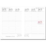 Rozmiar: 143 x 205 mm Format: A5 Kalendarium: tygodniowe czeskie/słowackie Liczba stron: 128 Kolor bloku: biały Wiązanie: V8 Materiał: gładka skóra ekologiczna Zawiera: dane osobowe, planer urlopów, kalendarz planowania, numery kierunkowe, świ
