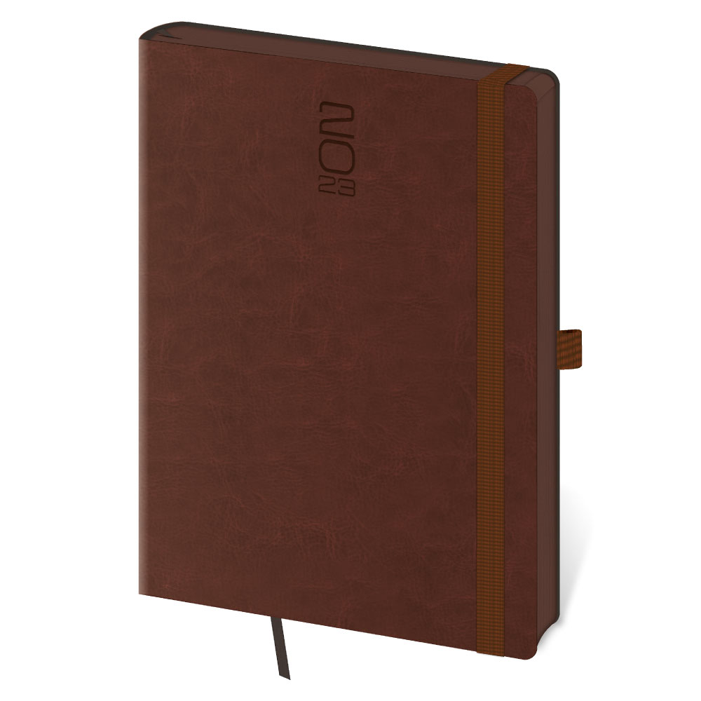 Kalendarz książkowy tygodniowy A5 2023 Memory z gumką - ciemnobrązowy