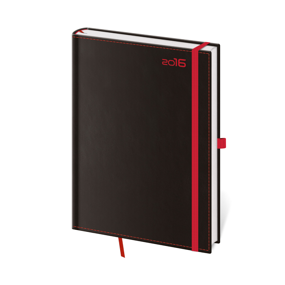 Kalendarz książkowy 2016 tygodniowy A5 Black Red z pętelką na długopis