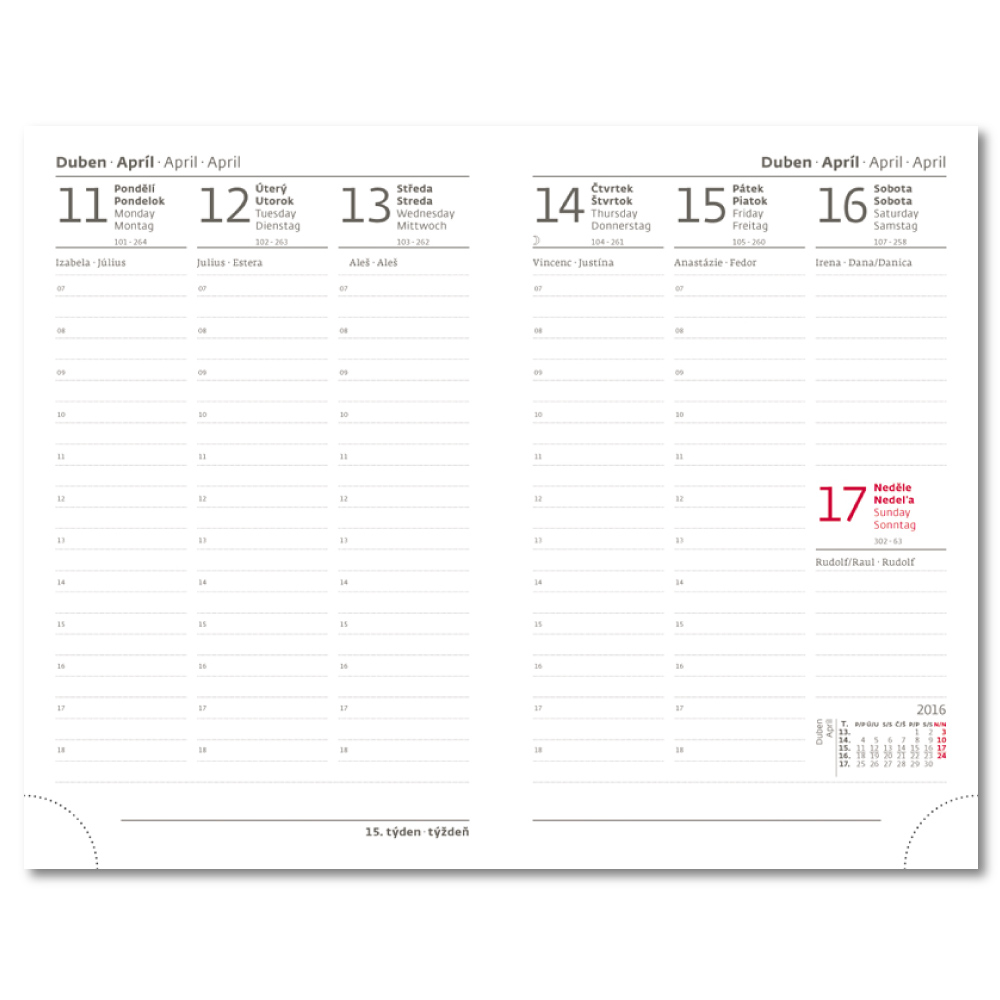 Kalendarz książkowy 2016 tygodniowy kieszonkowy Black Red z pętelką na długopis Format: 90 x 140 mm Liczba stron: 128 Łączenie - szew V8 Kolor bloku - biały Kalendarium tygodniowe Dane osobowe, planer urlopu (miesięczny podgląd), planer, święta międzyn