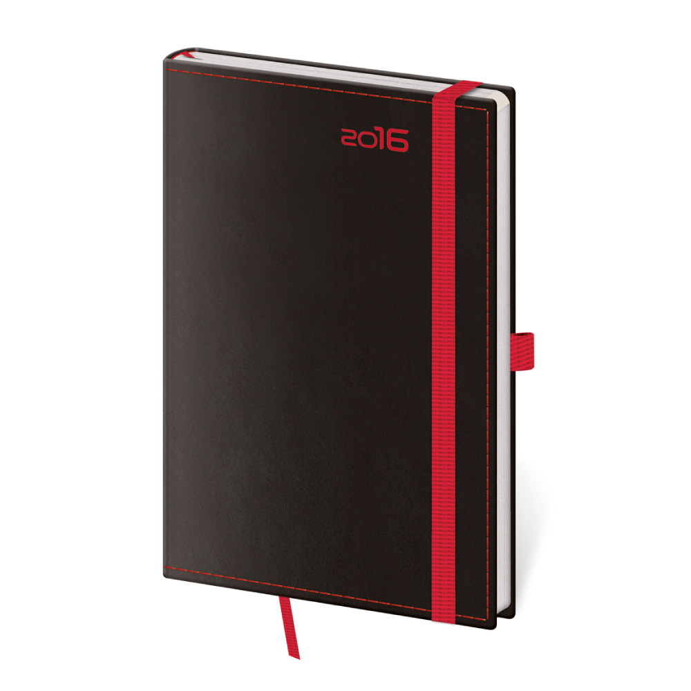 Kalendarz książkowy tygodniowy kieszonkowy z gumką Black Red 2016 z pętelką na długopis