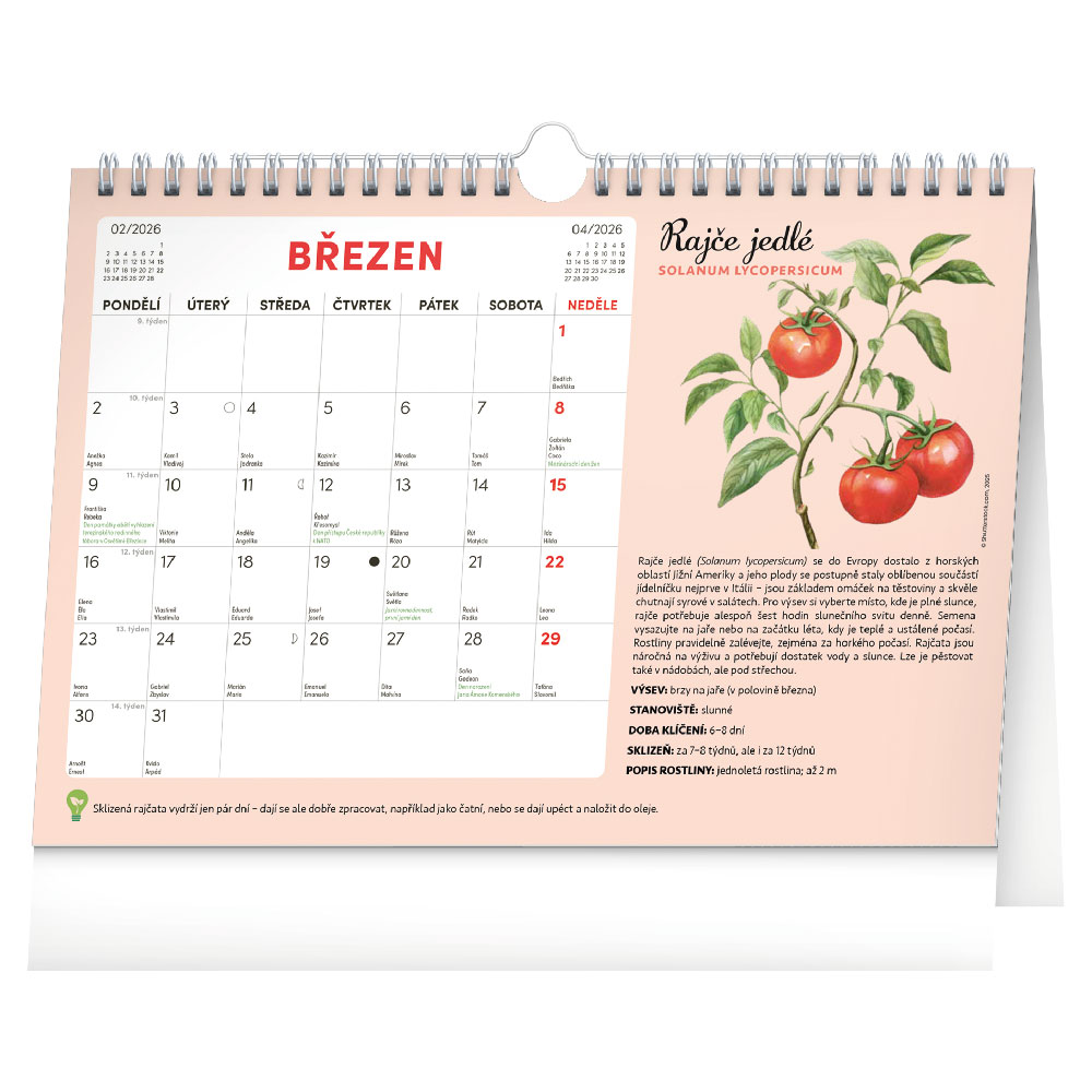 Zakres kalendarza: 15 arkuszy + 12 arkuszy z nasionami