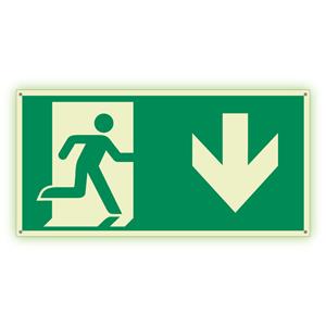 Kierunek do wyjścia drogi ewakuacyjnej w lewo - fotoluminescencyjny znak z dziurkami, płyta PVC 2 mm 400x200 mm
