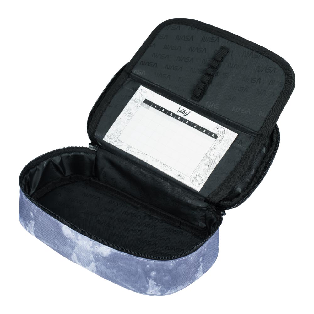 • Twardy piórnik szkolny ze składaną wewnętrzną przegrodą.