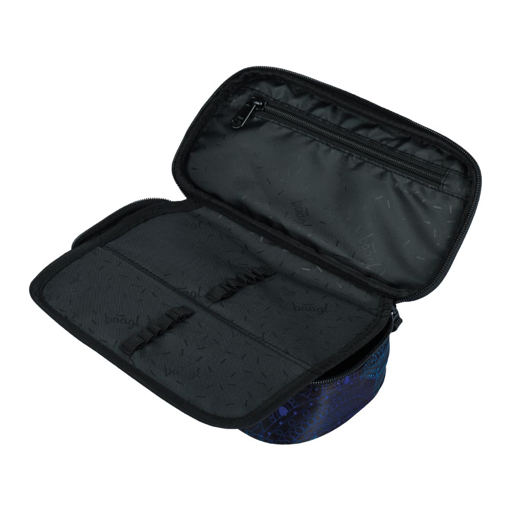 • Twardy piórnik szkolny ze składaną wewnętrzną przegrodą.