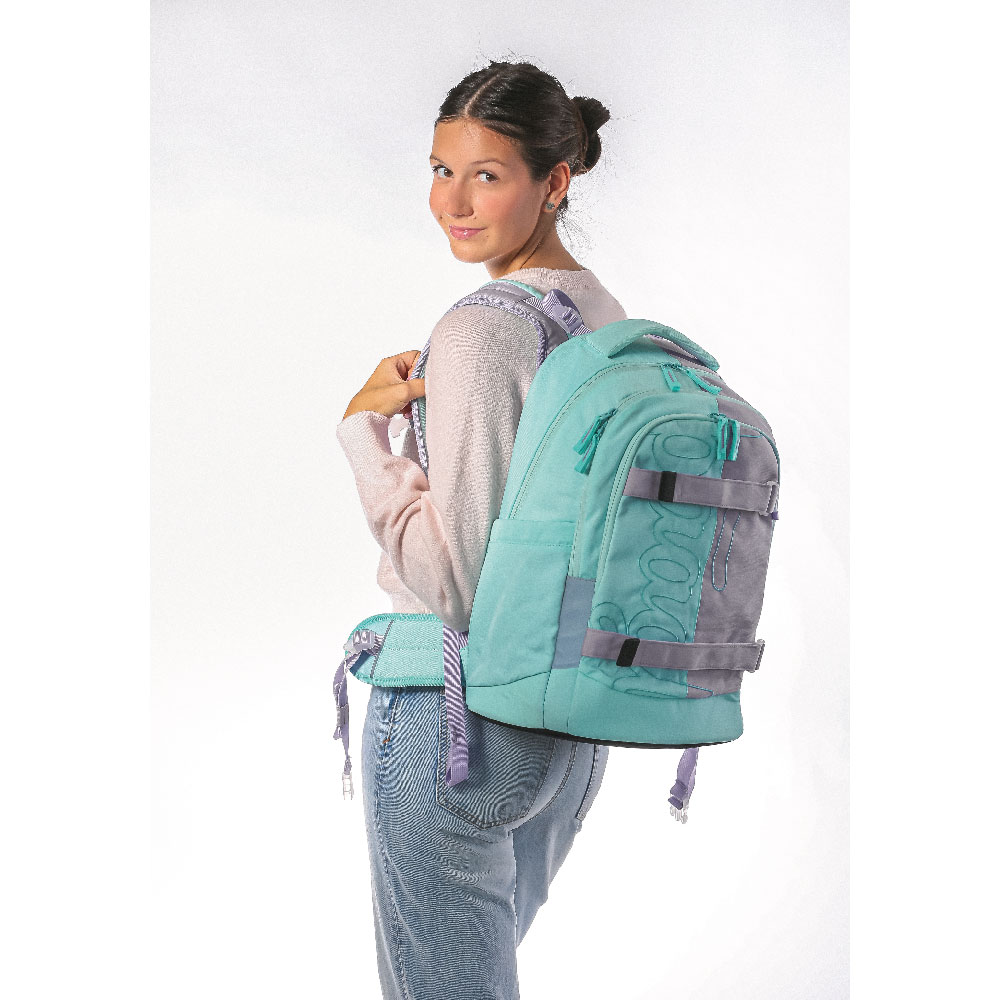 • Na przodzie plecaka znajdują się również dwa paski do mocowania deskorolki.