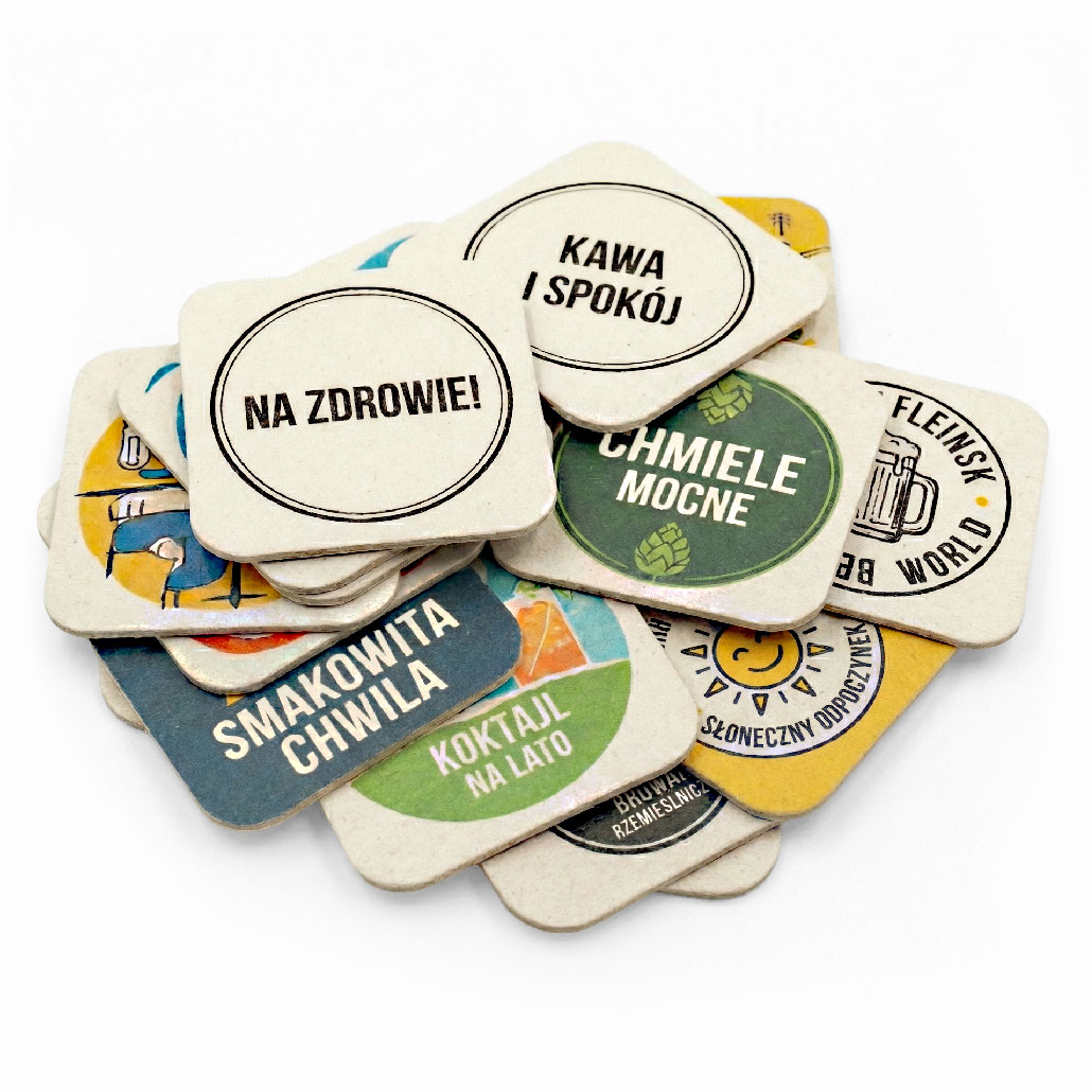 Podkładki pod piwo kwadratowe 93 mm x 93 mm, zadruk dwustronny - na zamówienie