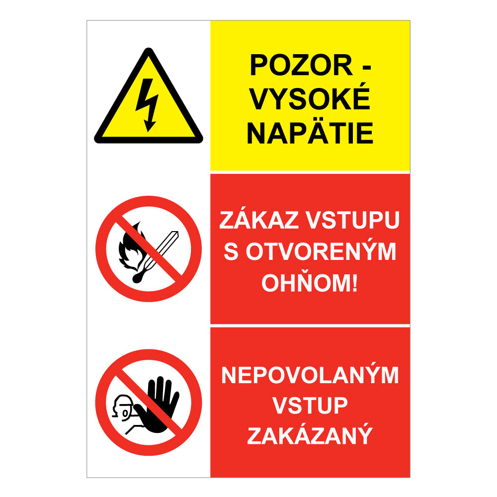 Pozor vysoké napätie-Zákaz vstupu- ??Nepovolaným vstup zakázaný, kombinácia,plast 2mm,148x210mm