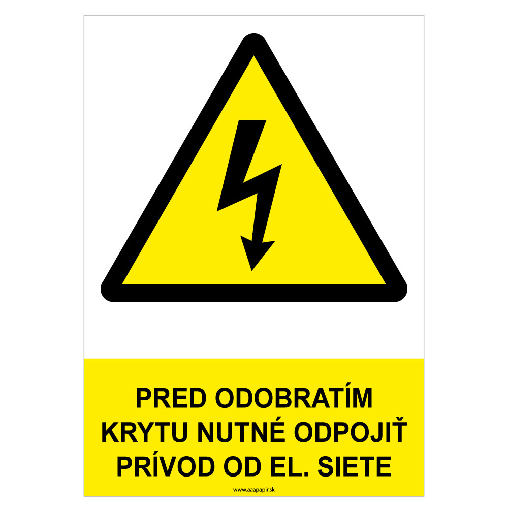 Pred odobratím krytu nutné odpojiť prívod od el. siete-bezpečnostná tabuľka, samolepka A4