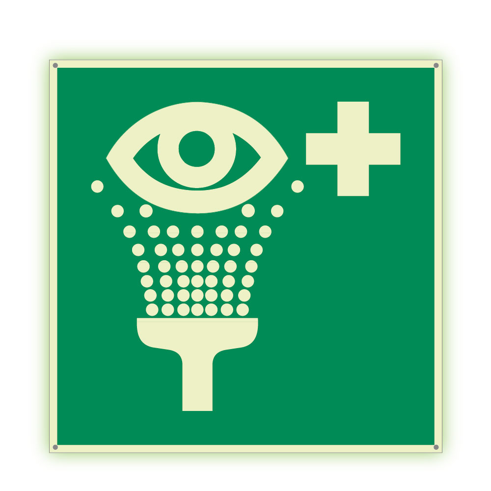 Prysznic do przemywania oczu - fotoluminescencyjny znak z dziurkami, płyta PVC 2 mm 300x300 mm