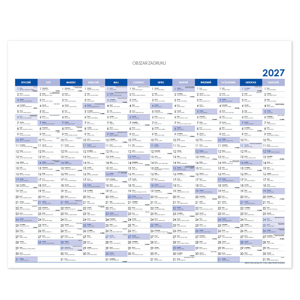 Na tym kalendarzu oferujemy bezpłatny nadruk logo. (od 10szt.)
