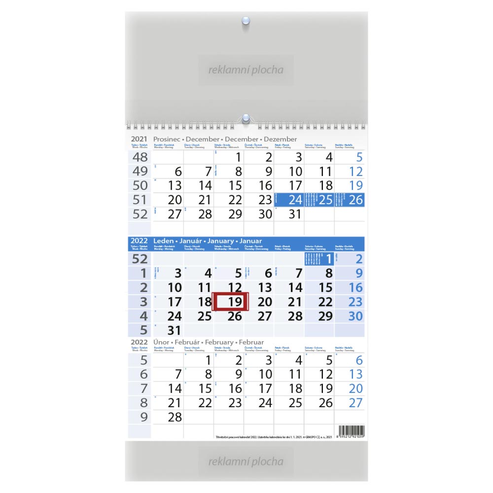 Ścienny kalendarz 2022 - Trzymiesięczny niebieski