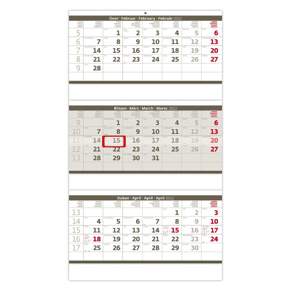 Ścienny Kalendarz 2022 - Trzymiesięczny składany szary