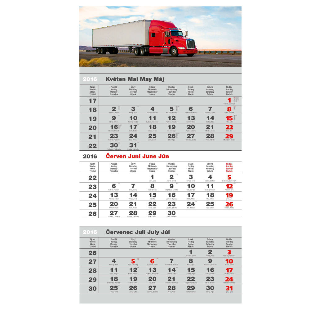 Ścienny kalendarz Ciężarówki Szary 3-miesięczny (czeskie nazwy) 2016
