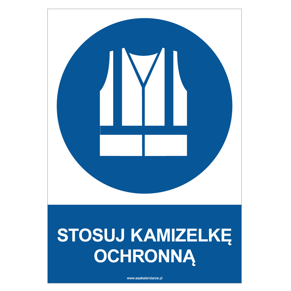 STOSUJ KAMIZELKĘ OCHRONNĄ - znak BHP, naklejka A4