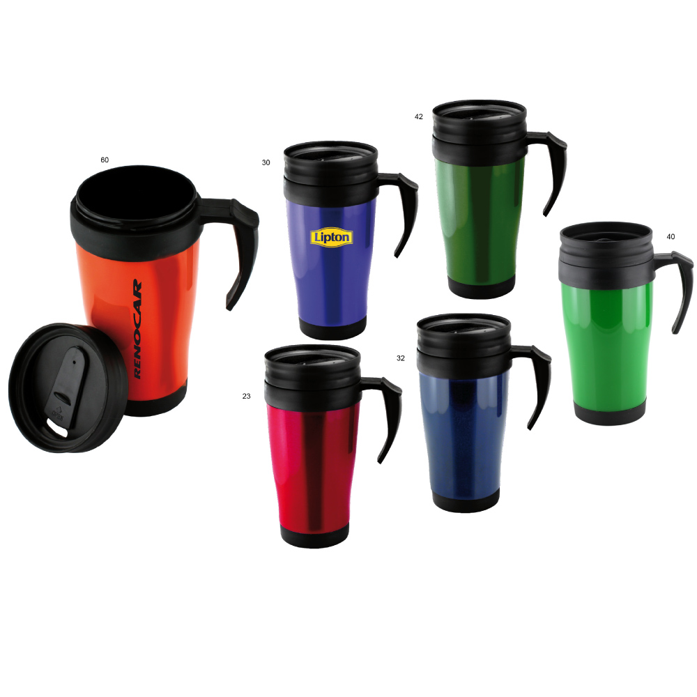 dwuścienny, plastikowy kubek termiczny z pokrywą z tworzywa sztucznego