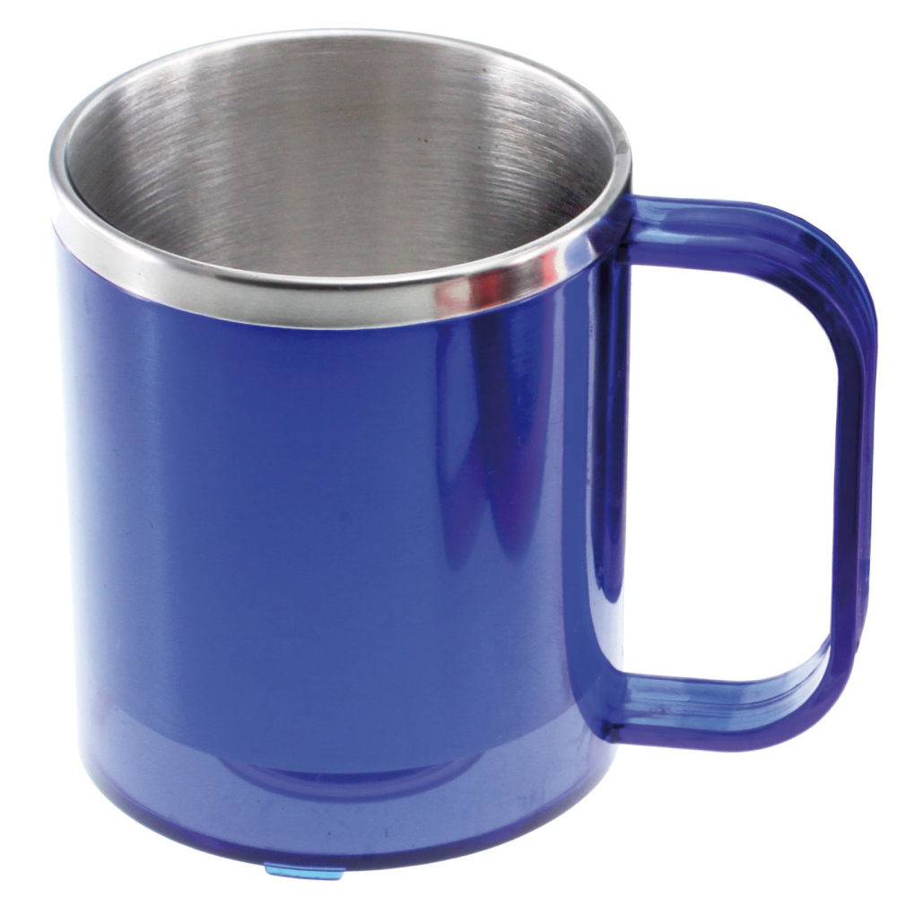 Termokubek KARPATY - niebieski dwuścienny kubek termiczny z pokrywą ze stali nierdzewnej i tworzywa sztucznego pojemność - 220 ml