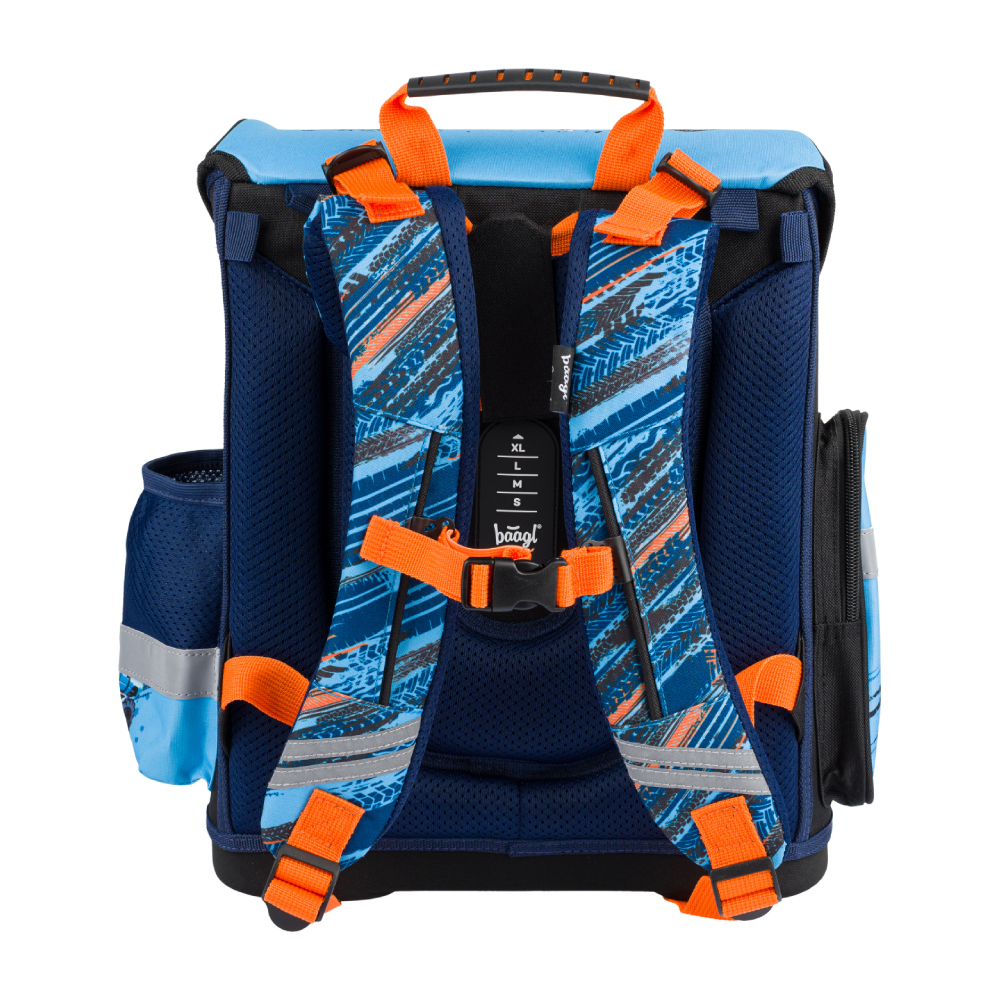 • System przesuwnego panelu tylnego BAAGL ADJUSTABLE SYSTEM umożliwia dostosowanie optymalnej pozycji szelek, w stosunku do wzrostu dziecka.