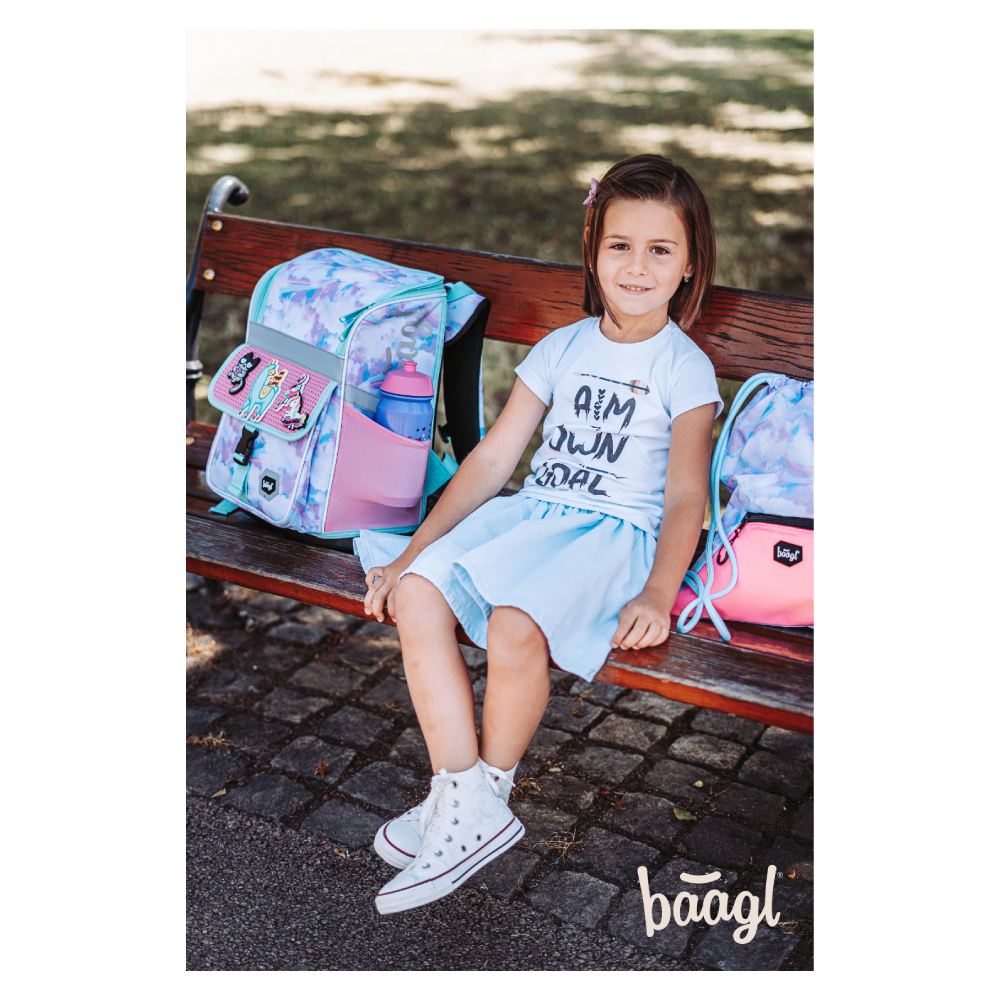 • System przesuwnego panelu tylnego BAAGL ADJUSTABLE SYSTEM umożliwia dostosowanie optymalnej pozycji szelek, w stosunku do wzrostu dziecka.