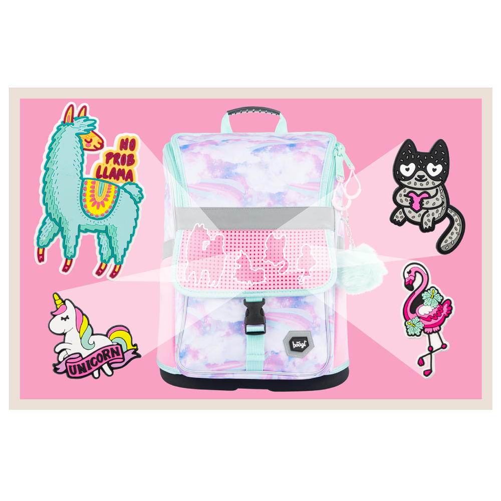 • Plecak jest wyposażony w modny breloczek, elementy odblaskowe i wymienne elementy ozdobne.