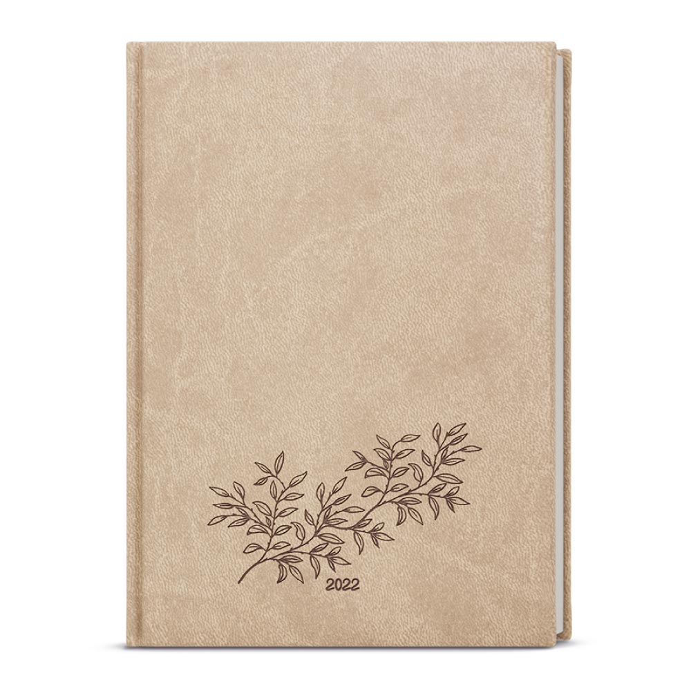Tygodniowy kalendarz książkowy 2022 Oskar Vivella z tłoczeniem A5 - beżowy - gałązka