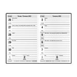 Rozmiar bloku: 75 x 115 mm Format: kieszonkowy Kalendarium: tygodniowe czeskie z imionami Materiał wierzchni: gładka skóra ekologiczna Wiązanie: V1 Ilość stron: 64 stron Kolor bloku: biały Kalendarz zawiera: fazy księżyca, pory roku, letni i zi