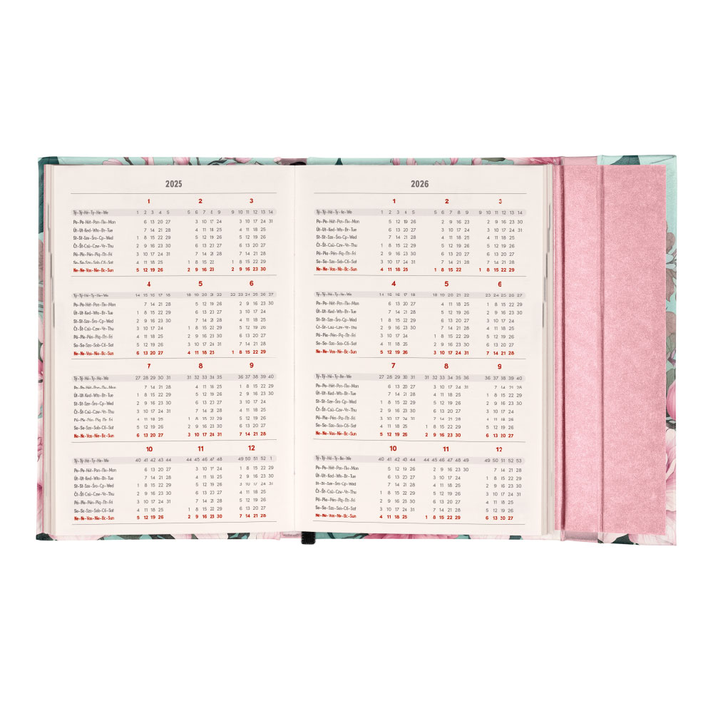 Tygodniowy kalendarz książkowy 2025 B6 magnetyczny Różowy kwiat