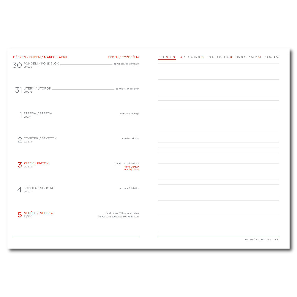 Kalendarium: tygodniowe czeskie + jedna strona na notatki
