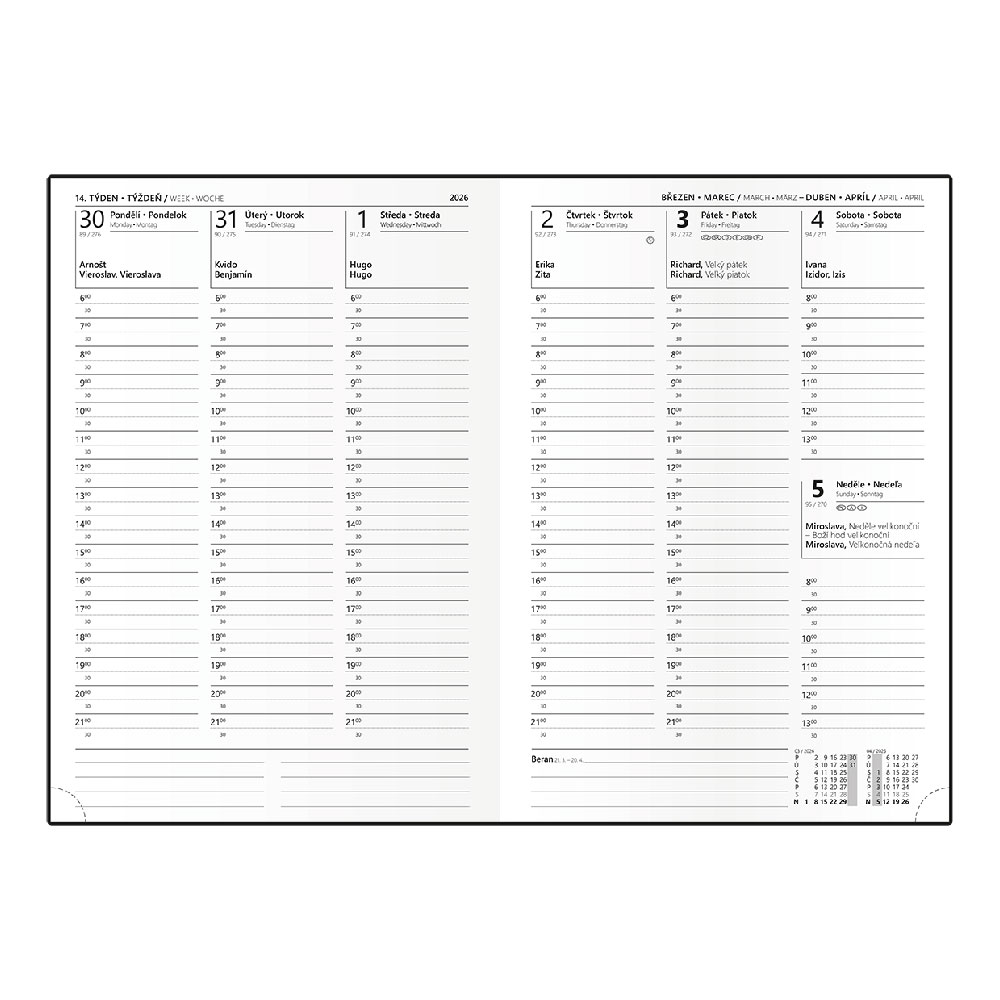 Kalendarz: tygodniowy nominalny czeski i słowacki