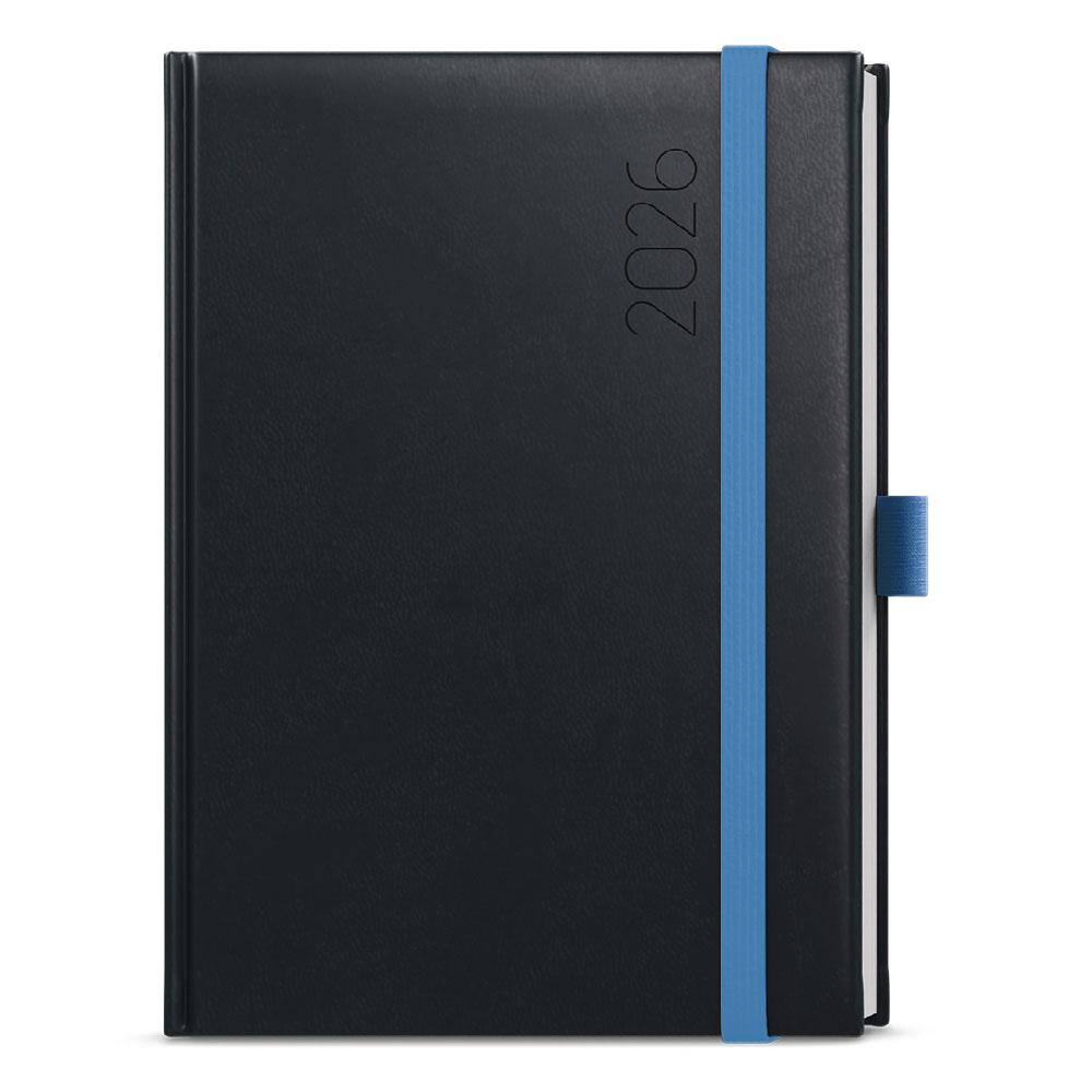 Zawiera wytłoczenie roku, gumkę do zamknięcia oraz pętelkę na długopis.