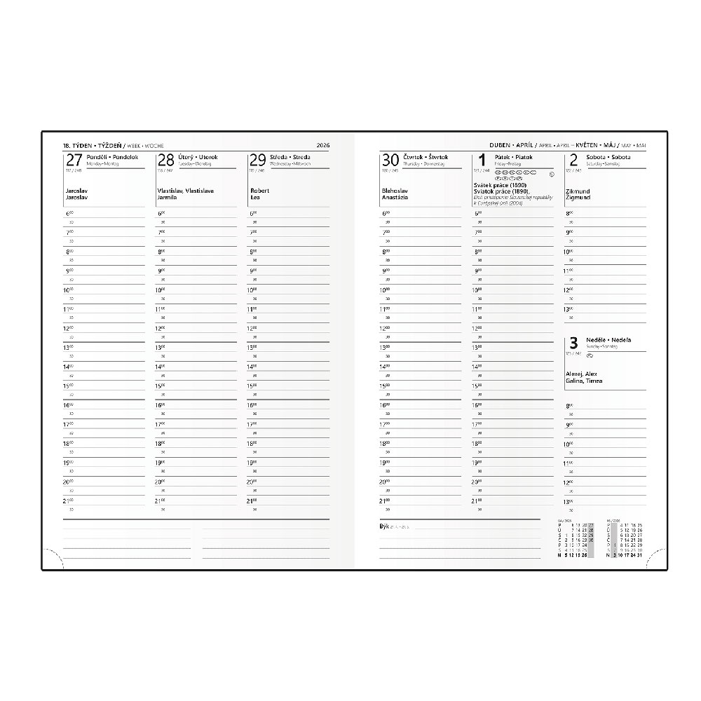 Kalendarz: tygodniowy nominalny czeski i słowacki