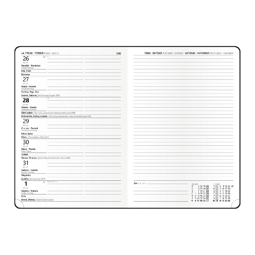 Kalendarz: tygodniowy nominalny czeski i słowacki