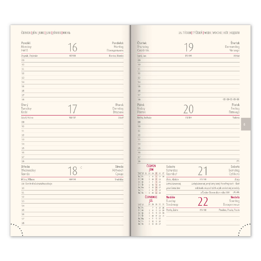 Kalendarium: 6-języczne tygodniowe od grudnia 2024 (CZ, SK, GB, DE, HU, RU)