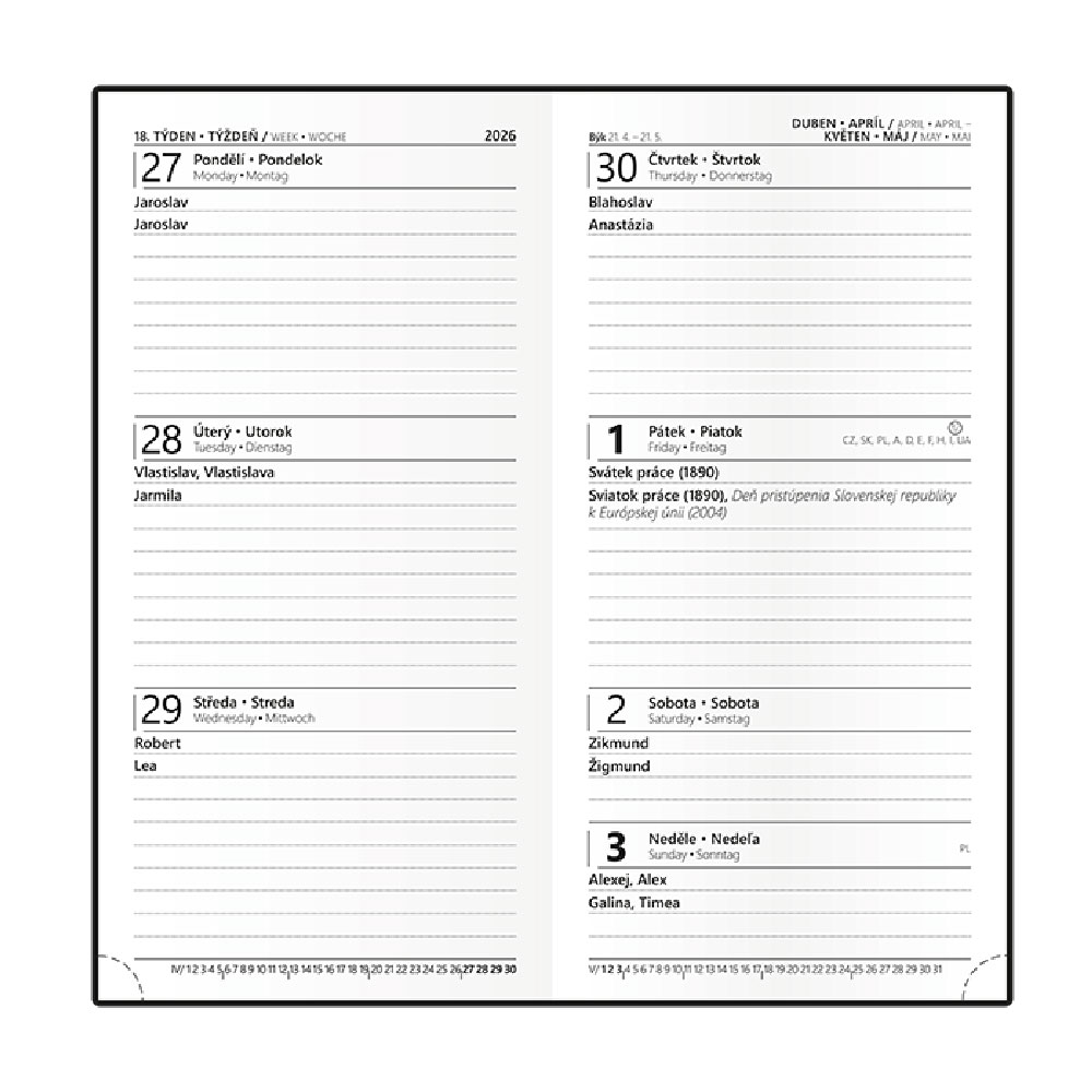 Kalendarz: tygodniowy nominalny czeski i słowacki