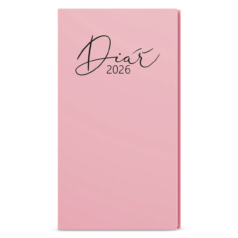 Wymiary: 75 x 150 mm Format: kieszeń Kalendarz: tygodniowy nominalny czeski i słowacki Mutacje językowe: CZ, SK, EN, DE Materiał okładki: półbłyszczący materiał o drobnej strukturze Papier: biały w perforowanych rolkach Liczba stron: 128 Wiązanie: