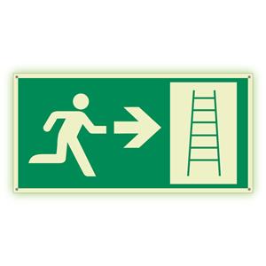 Únikový rebrík vpravo - fotoluminiscenčná tabuľka, plast 2 mm s dierkami 200x100 mm