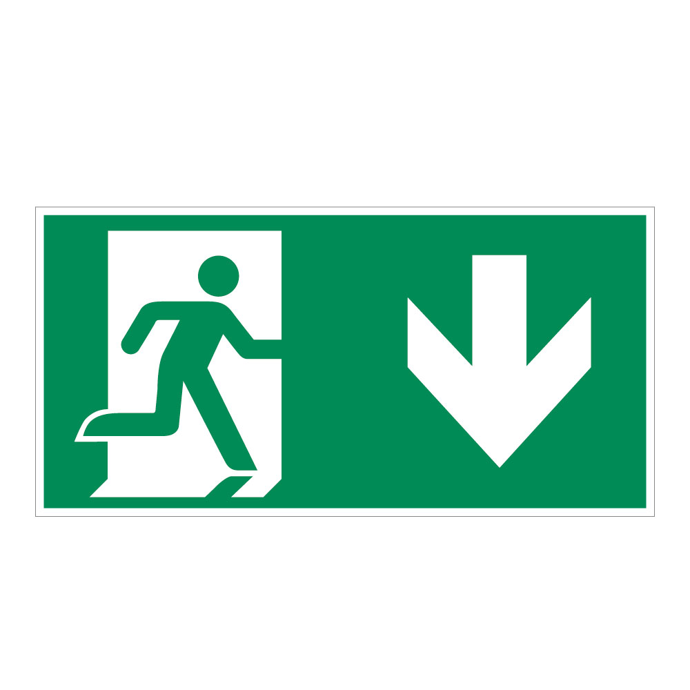 Únikový východ dole - bezpečnostná tabuľka, plast 1 mm 300x150 mm