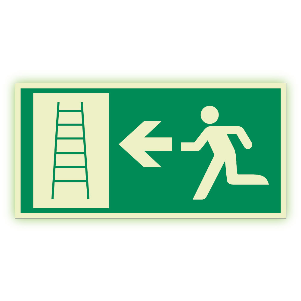 Únikový žebřík - směr vlevo - fotoluminiscenční tabulka, samolepka 300x150 mm