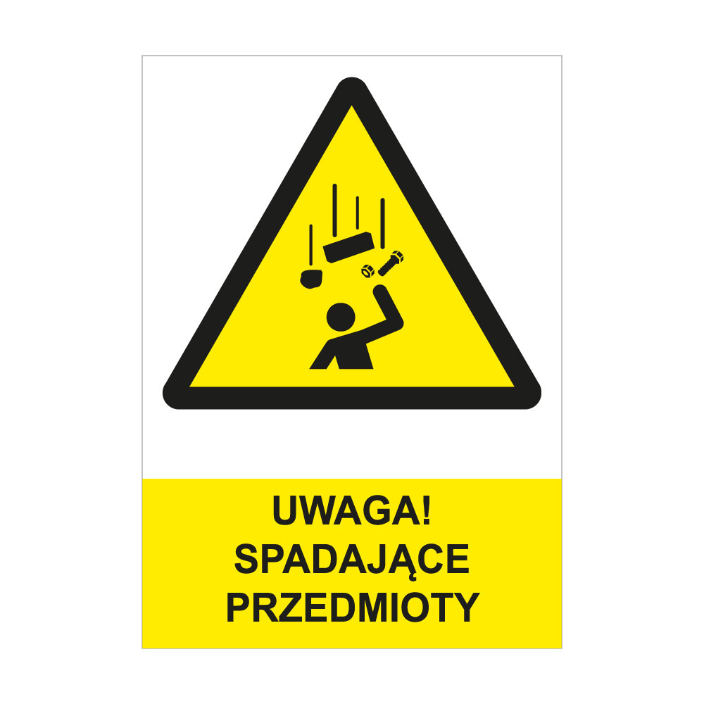 | UWAGA! SPADAJĄCE PRZEDMIOTY - znak BHP, naklejka A4 | RBT-SA4-390-PL | Naklejka | A4 (ok. 210x297) | 3.47 | 4.27 |