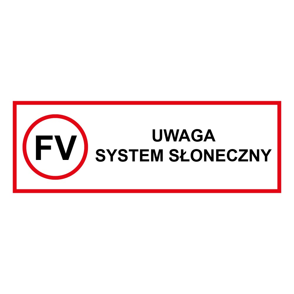 UWAGA - system słoneczny - znak BHP, naklejka 150 x 50 mm