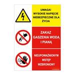 UWAGA! WYSOKIE NAPIĘCIE...- ZAKAZ GASZENIA WODĄ I PIANĄ - NIEUPOWAŻNIONYM WSTĘP…, płyta PVC 1 mm, 148x210 mm
