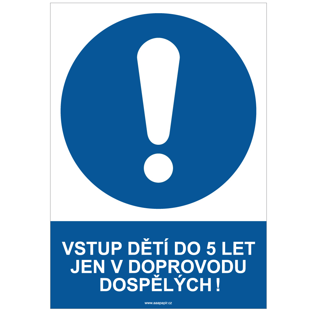 | VSTUP DĚTÍ DO 5 LET JEN V DOPROVODU DOSPĚLÝCH! - bezpečnostní tabulka, samolepka A4 | RBT-SA4-256 | Naklejka | A4 (ok. 210x297) | 3.03 | 3.73 |