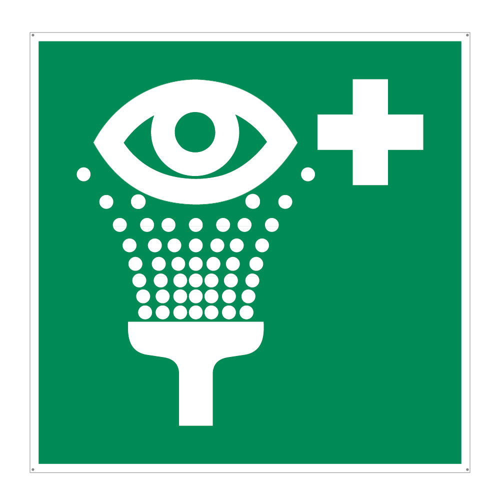Výplach očí - bezpečnostná tabuľka, plast 2 mm s dierkami 150x150 mm